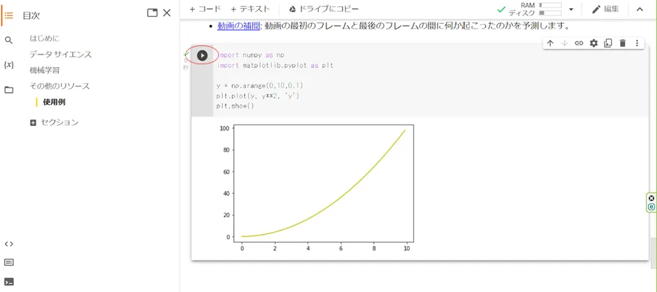 ここにGoogle Colabratryについての説明も載っています.グラフ作成にあたっては,「データサイエンス」の説明文が参考になるかもしれません.また,ライブラリであるMatplotib,NumPyもグラフ作成に便利です.