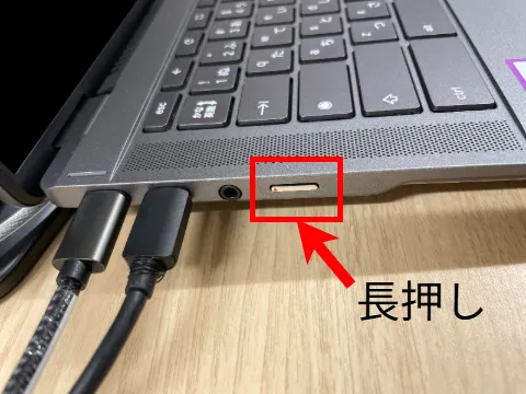 - 電源ボタン(本体左側)を長押しして,強制シャットダウンしてください.