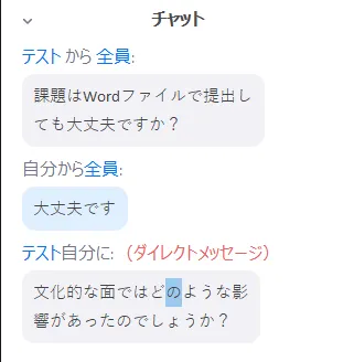 There are two methods for taking questions through Zoom: to have the students voice their questions out loud and to have them use the Chat feature (in Japanese). Things will go more smoothly if you set aside time for Q&A, or ask your students to use the Raise Hand feature (in Japanese) when having students ask their questions out loud.