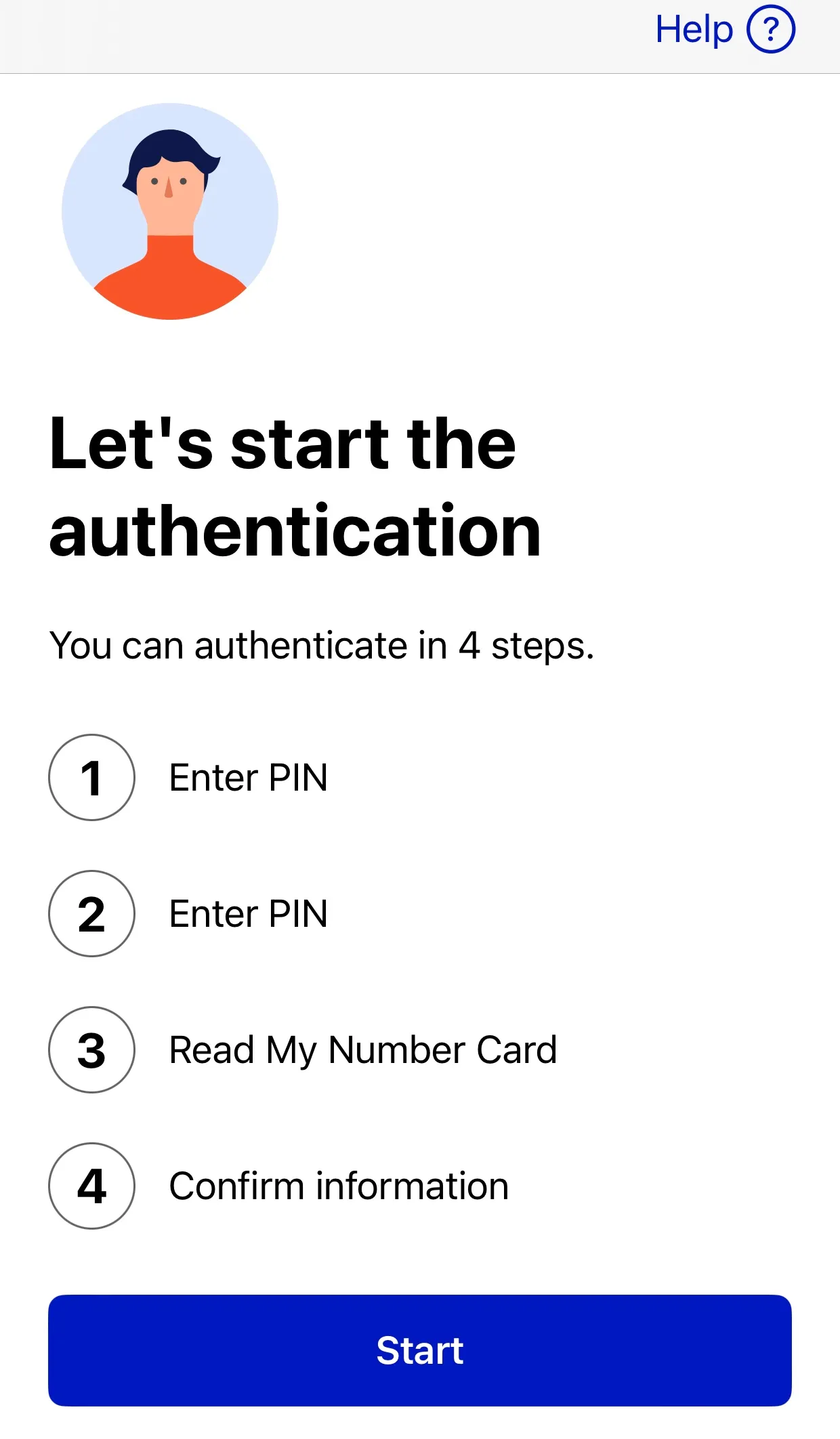 4. Tap “Start” to proceed with the authentication steps.