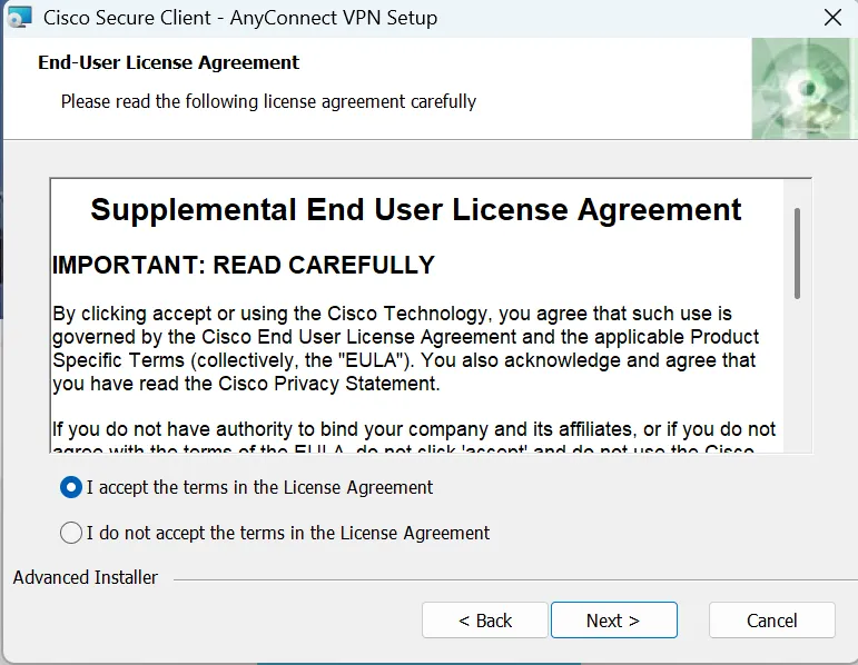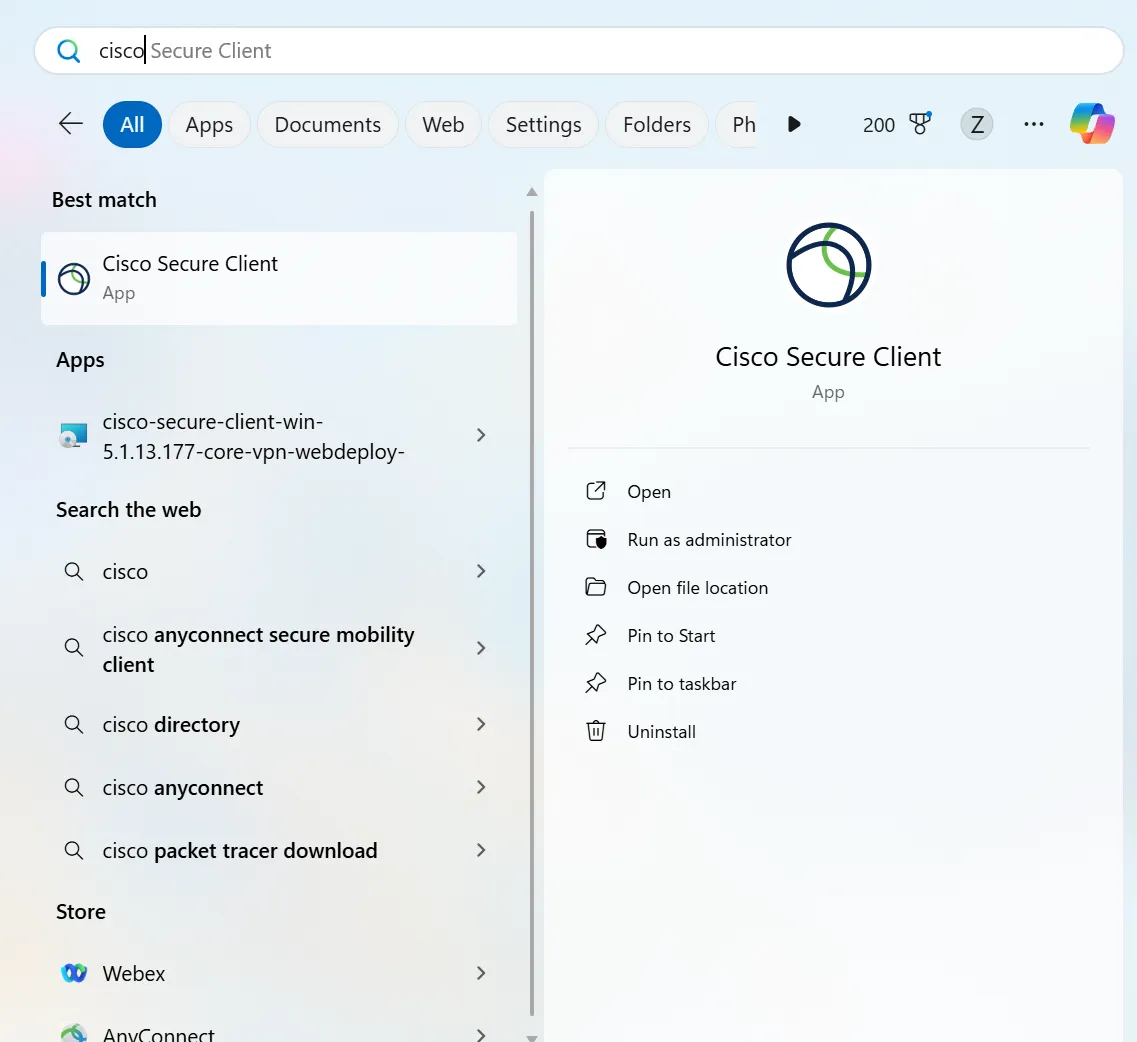 Step D: If the installation was completed successfully, the VPN client application “Cisco Secure Client” is added to the application.