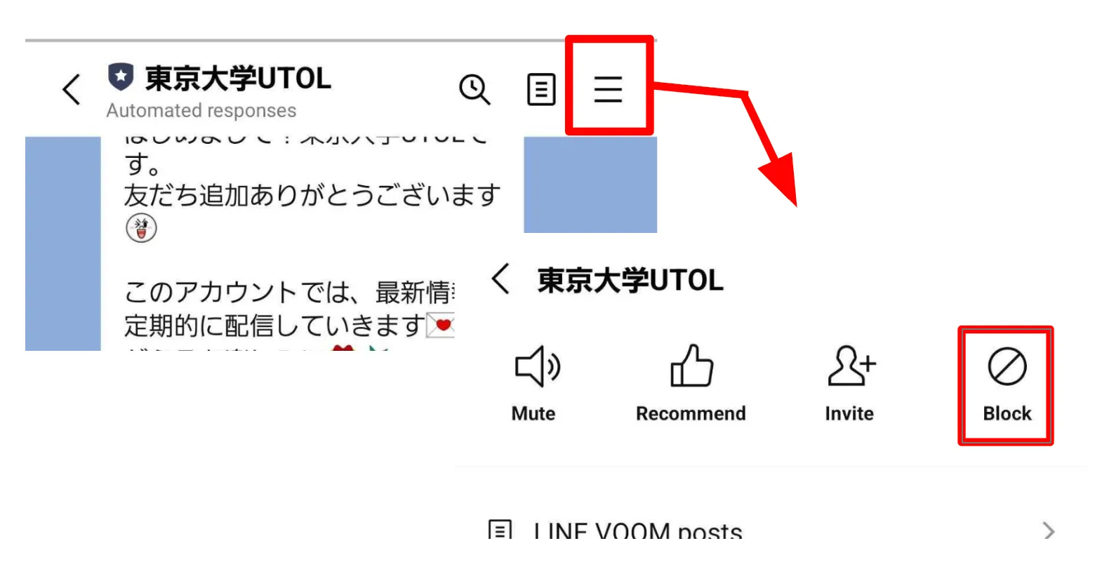 - Open the LINE App, and go to the chat room with “東京大学 UTOL”.