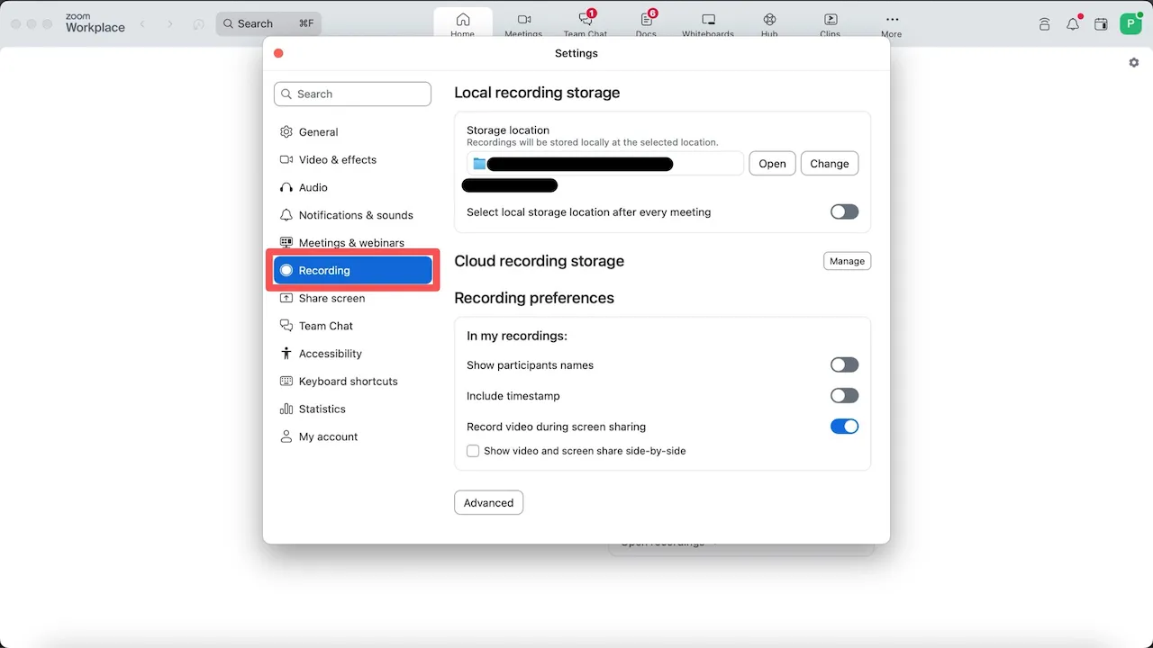 - To separately record only the active speaker, only Gallery View, or only shared content: “Record active speaker, gallery view and shared screen separately”.