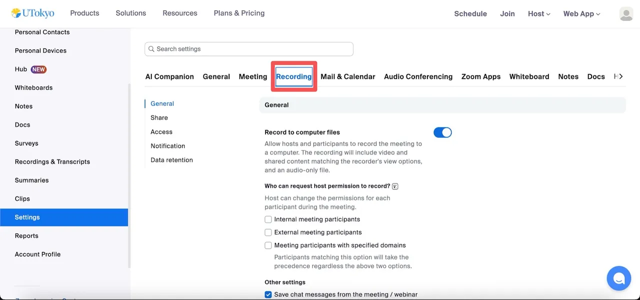 Sign in to the Zoom web portal by following the steps in “Sign-in Methods for Zoom”.