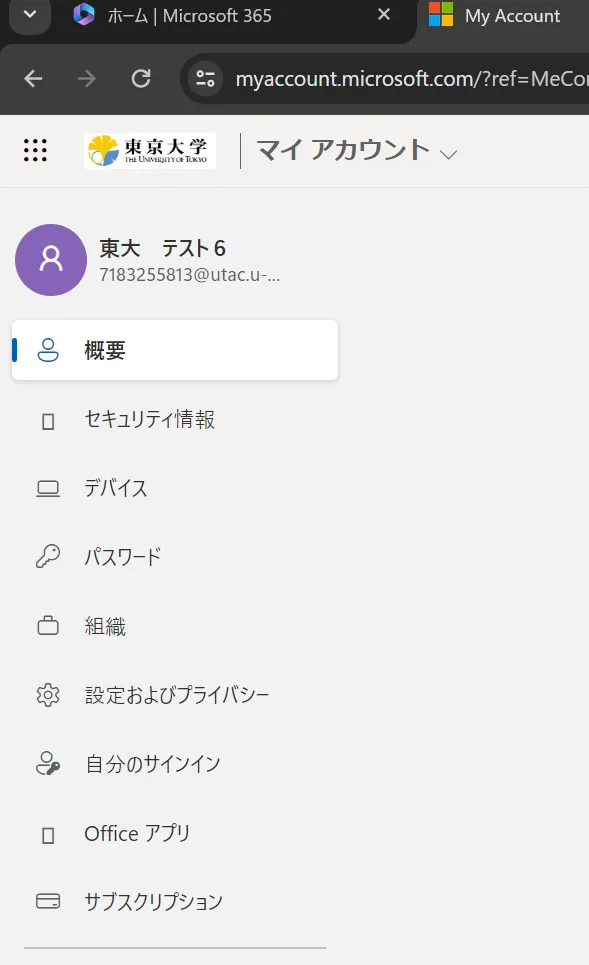 ※自分が上記に該当するかどうかを確認する方法:ウェブブラウザからMicrosoft365のマイ アカウントのページで確認します.対象者は,2024年2月1日からの上限縮小の対象となりますので,至急対応をお願いします.確認手順については下記「学生でも教職員でもないUTokyo Account保持者の確認方法」を参照してください.