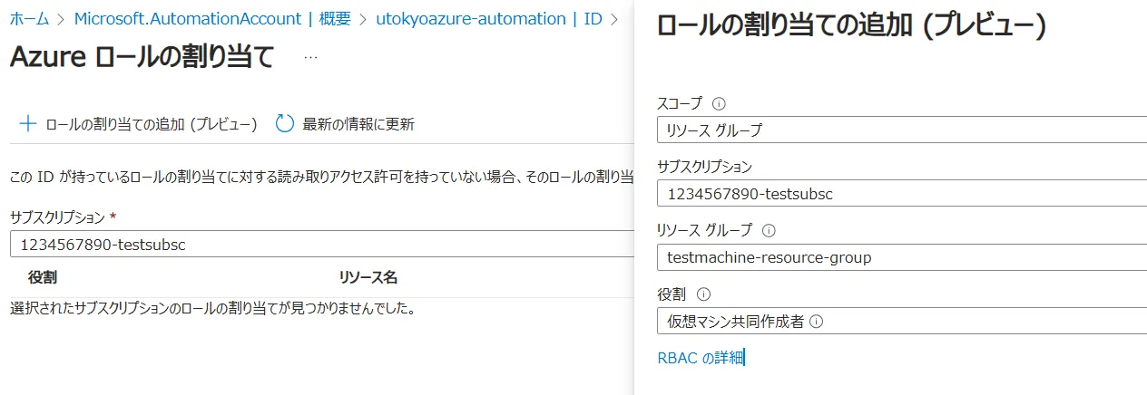 automation アカウントに仮想マシンへのアクセス権限を設定する