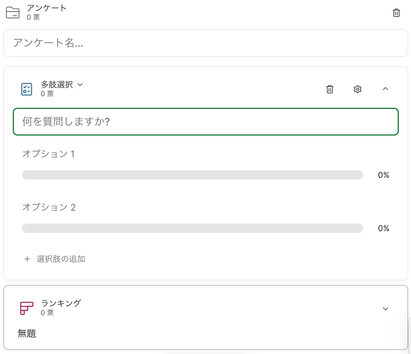 • ランキングー参加者に順位付けしてもらうための複数の項目を設定する