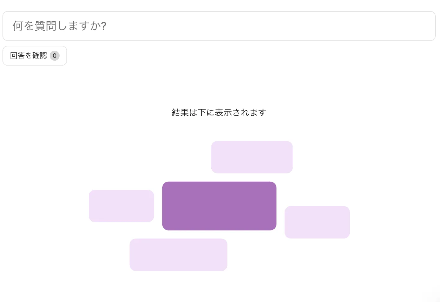 • ワードクラウドー参加者の回答が「クラウド」として可視化される質問を設定する(参加者は短文形式で答える)