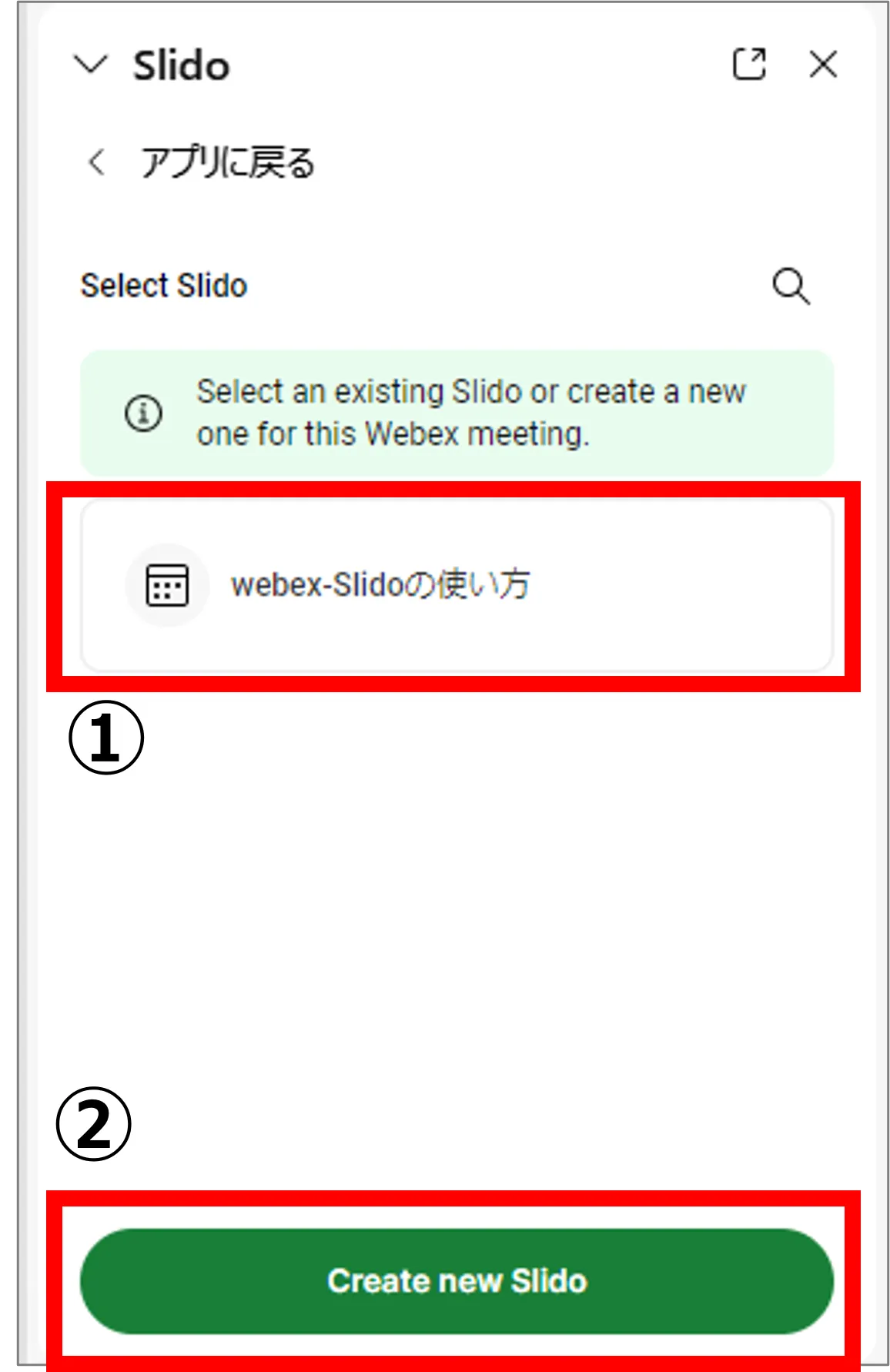 - Webex上で作成したSlidoイベントは,主催者のSlidoイベント一覧のページに保存されます.