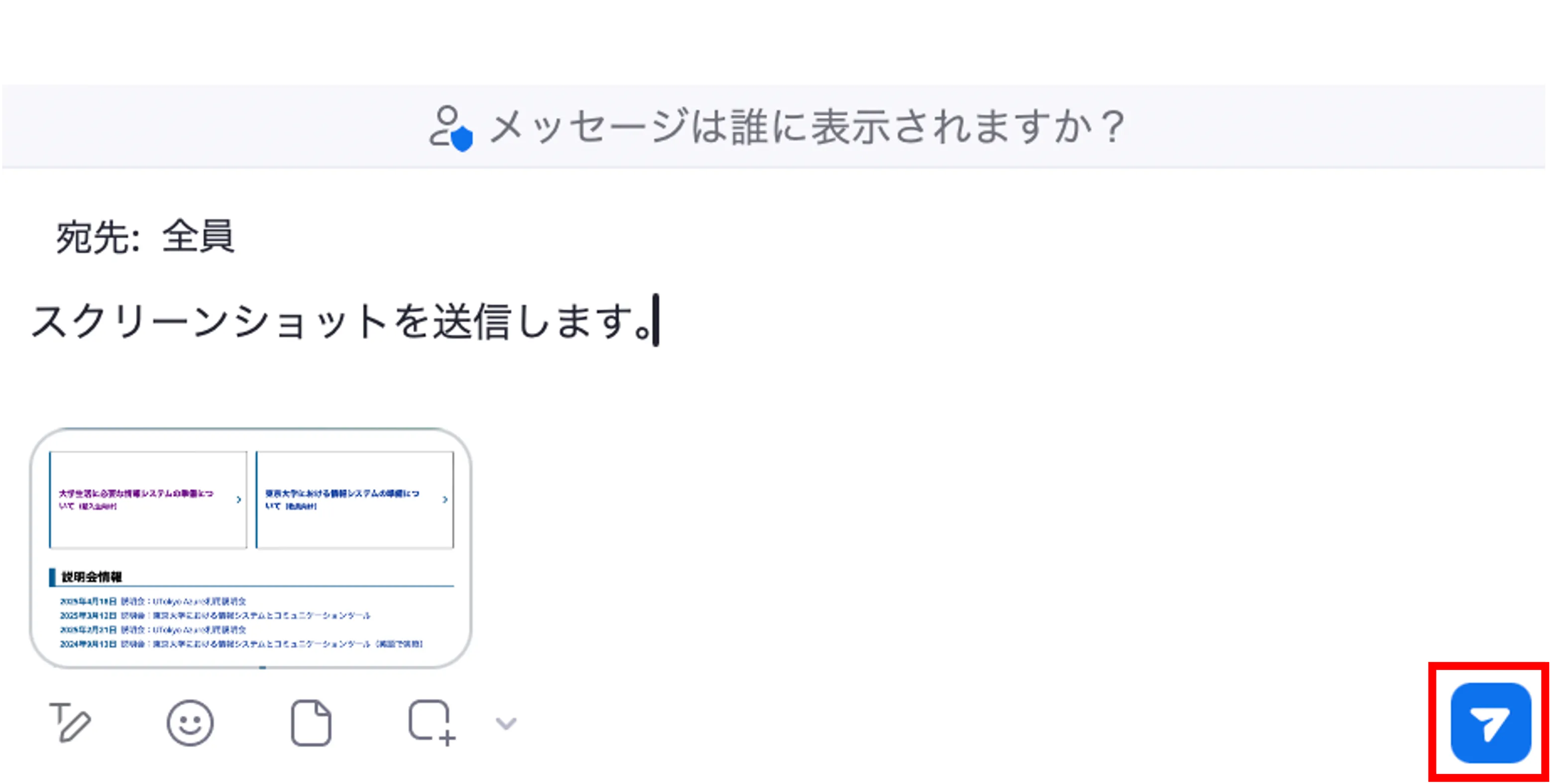 - チャット画面で下部の「スクリーンショット」アイコンを押してください.