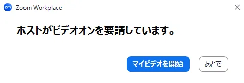 - ホストによってビデオが停止されている:ビデオを開始できない場合は,ホストによりビデオが停止されている可能性があります.そのため,ホストに「ビデオオンを要請」を押すように依頼してください.